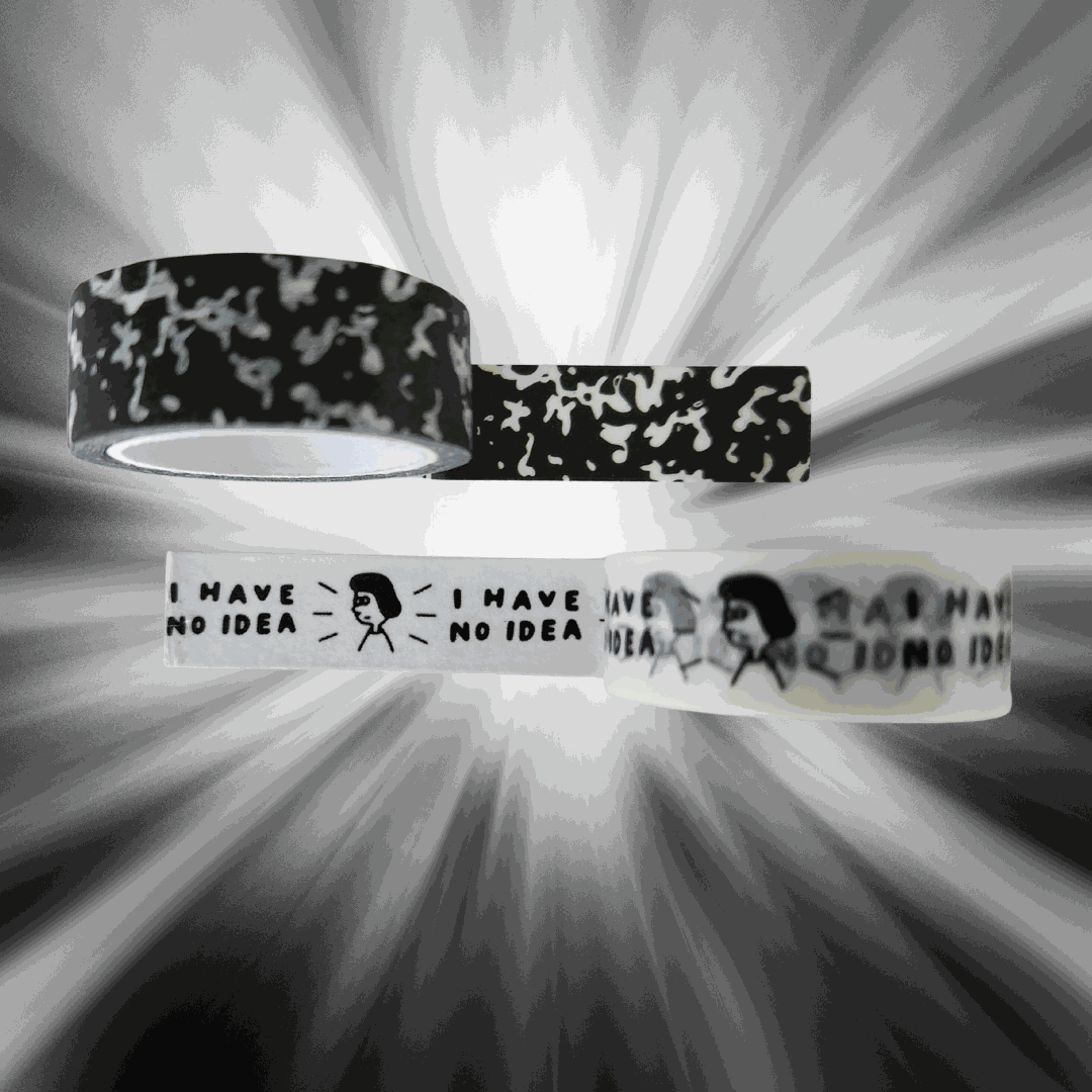 Get two 15mm x 5mm black and white rolls of washi tape featuring an old-school composition notebook pattern and a clever "I Have No Idea" pattern.